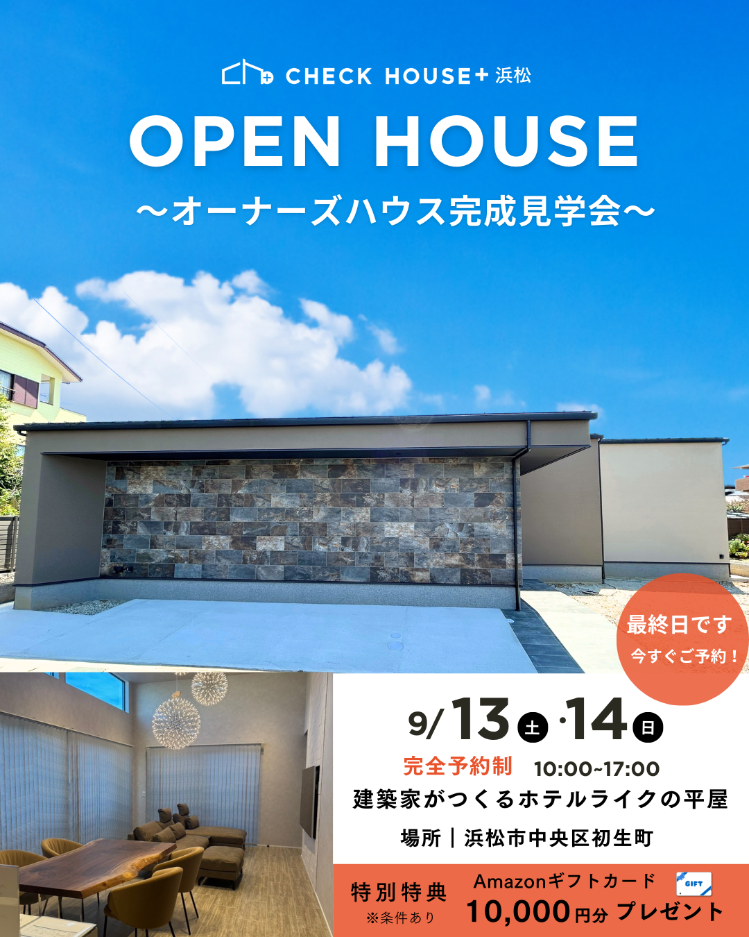 【終了しました】最終日です!【平屋完成見学会】ホテルライクな平屋 9/13(土).14(日)期間限定!